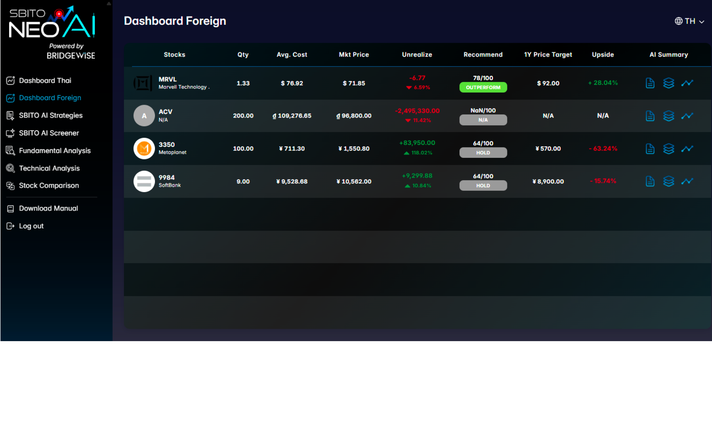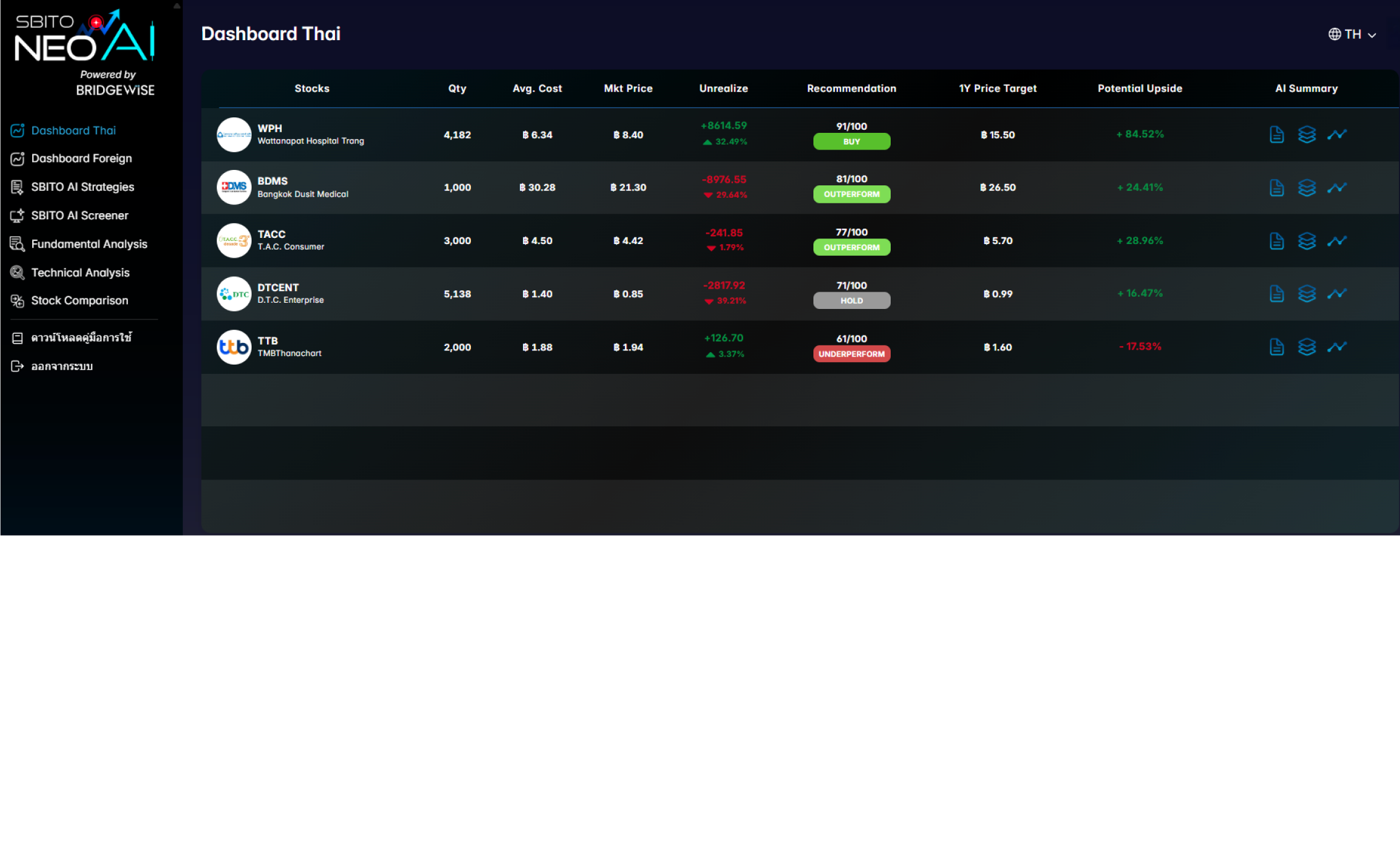 กำหนดกลยุทธ์ ด้วยคำแนะนำการลงทุนจาก AI โดยเลือกหุ้นที่ AI แนะนำ Buy-Hold-Sell ได้ครบทั้ง 4 ประเทศ ไทย อเมริกา ญี่ปุ่น เวียดนาม