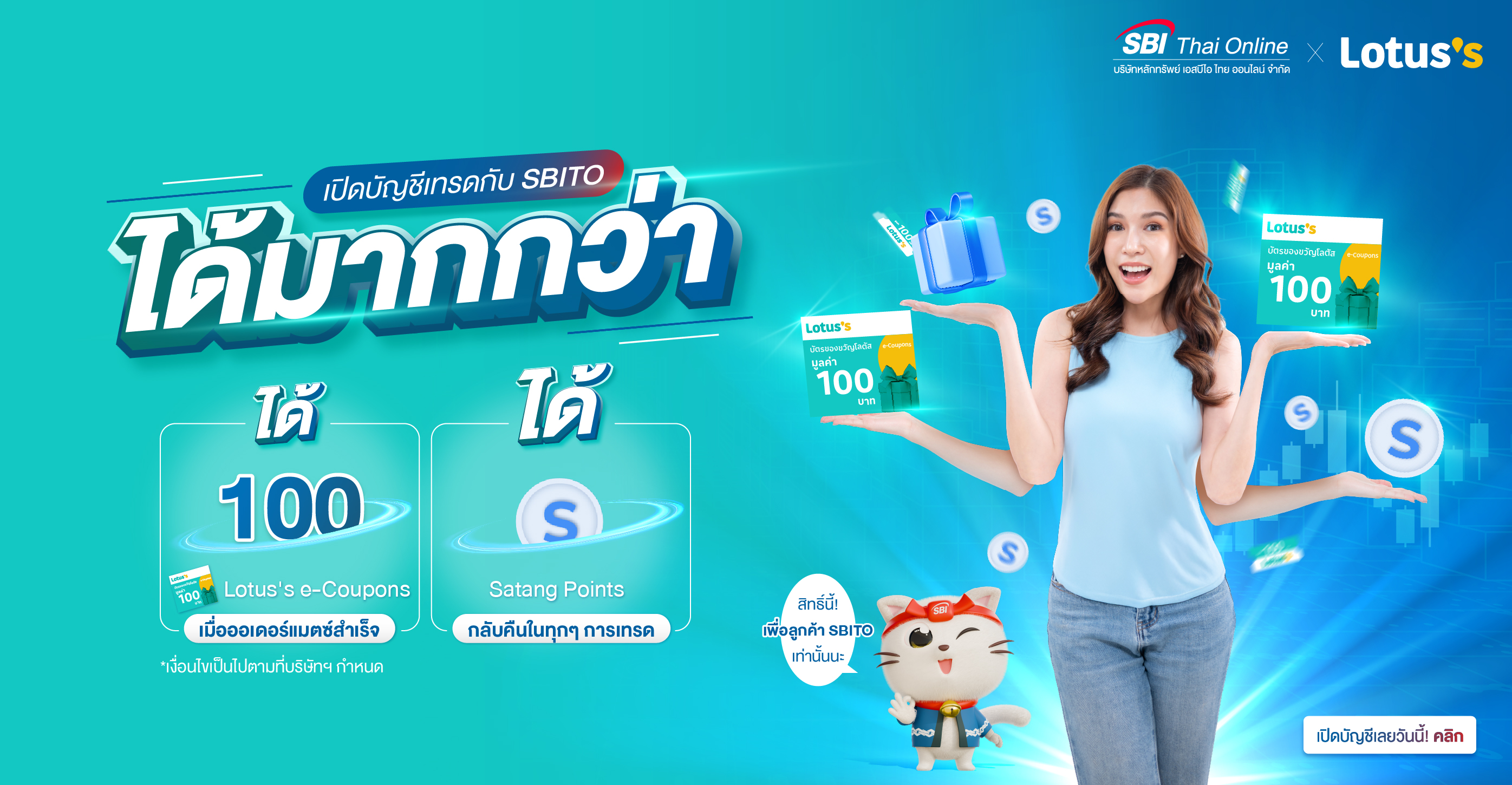 รายละเอียดโปรโมชั่น SBITO x Lotus's แคมเปญเปิดบัญชีหุ้นกับ SBITO รับฟรี Lotus's e-Coupons มูลค่า 100 บาท ...
